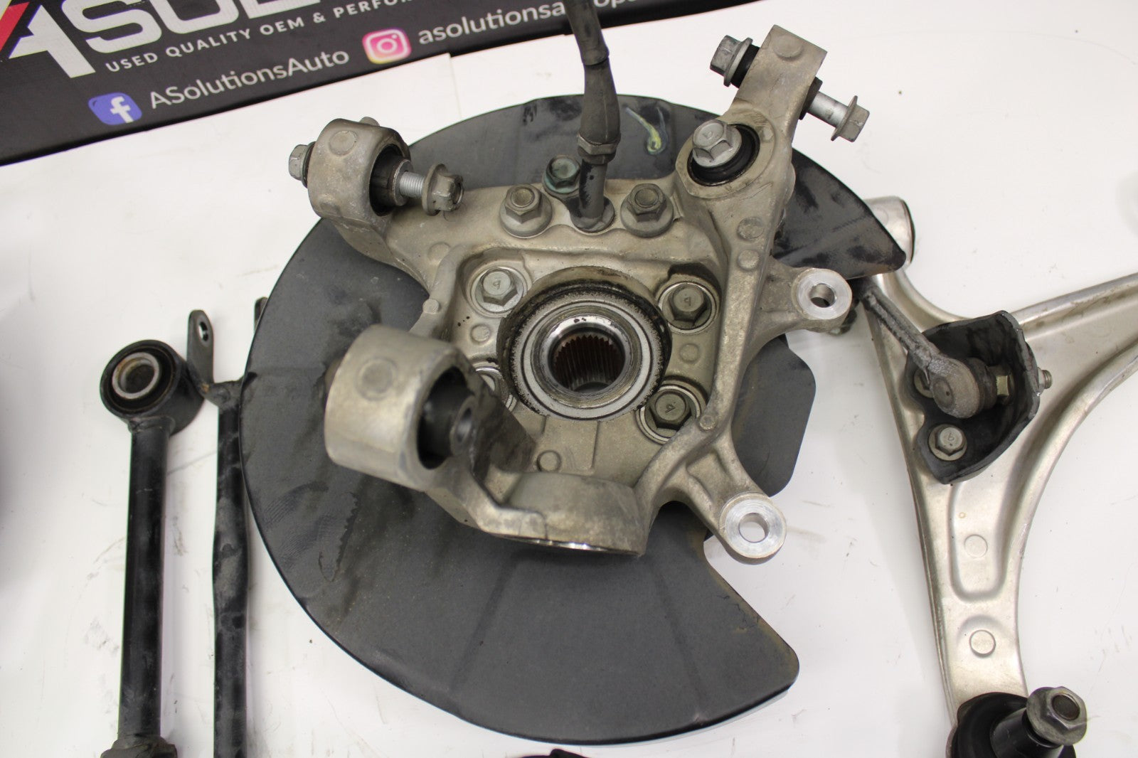 Includes spindle, trailing arm, lower bucket arm, camber arm and upper control arm