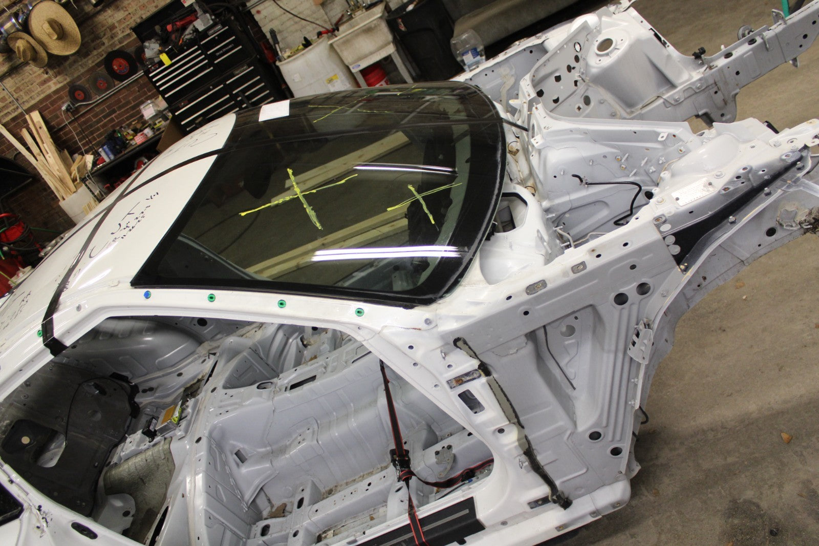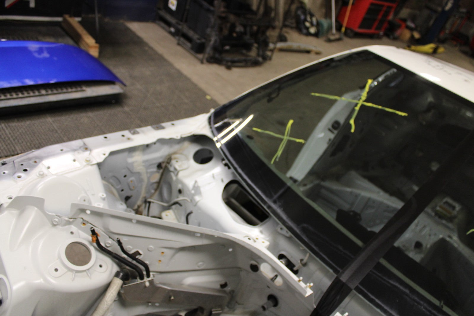 This cut would we cut midway through the door and through the roof as black tape shows