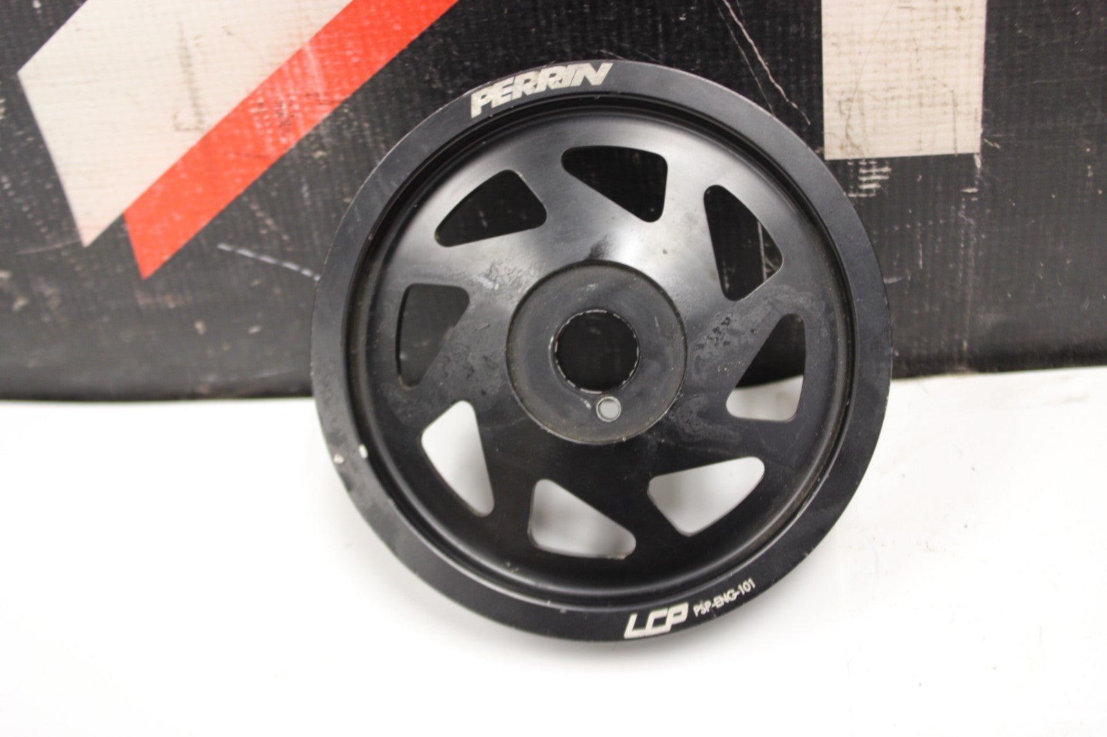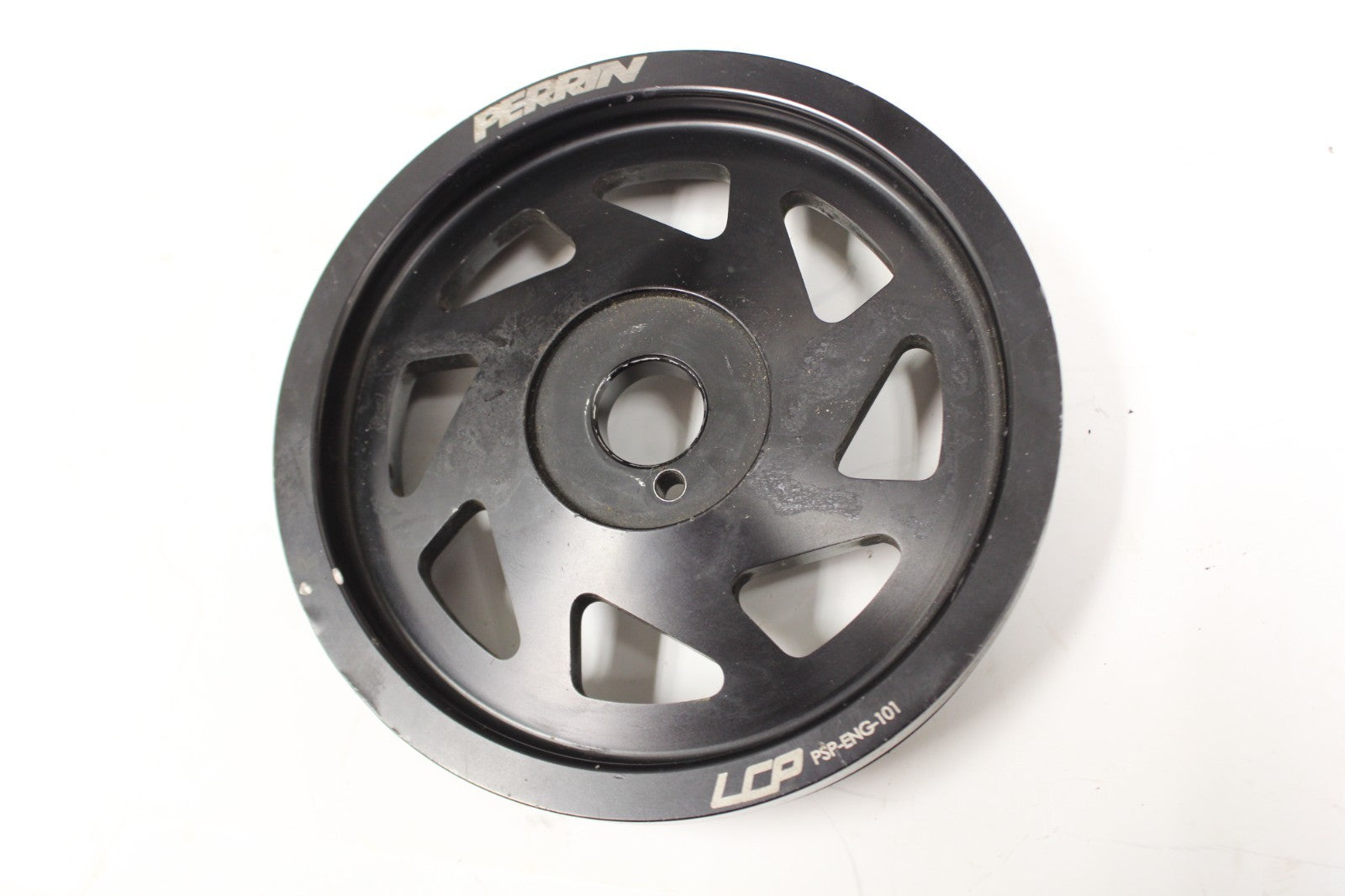 Used Perrin crank pulley off of a 2017 WRX STI