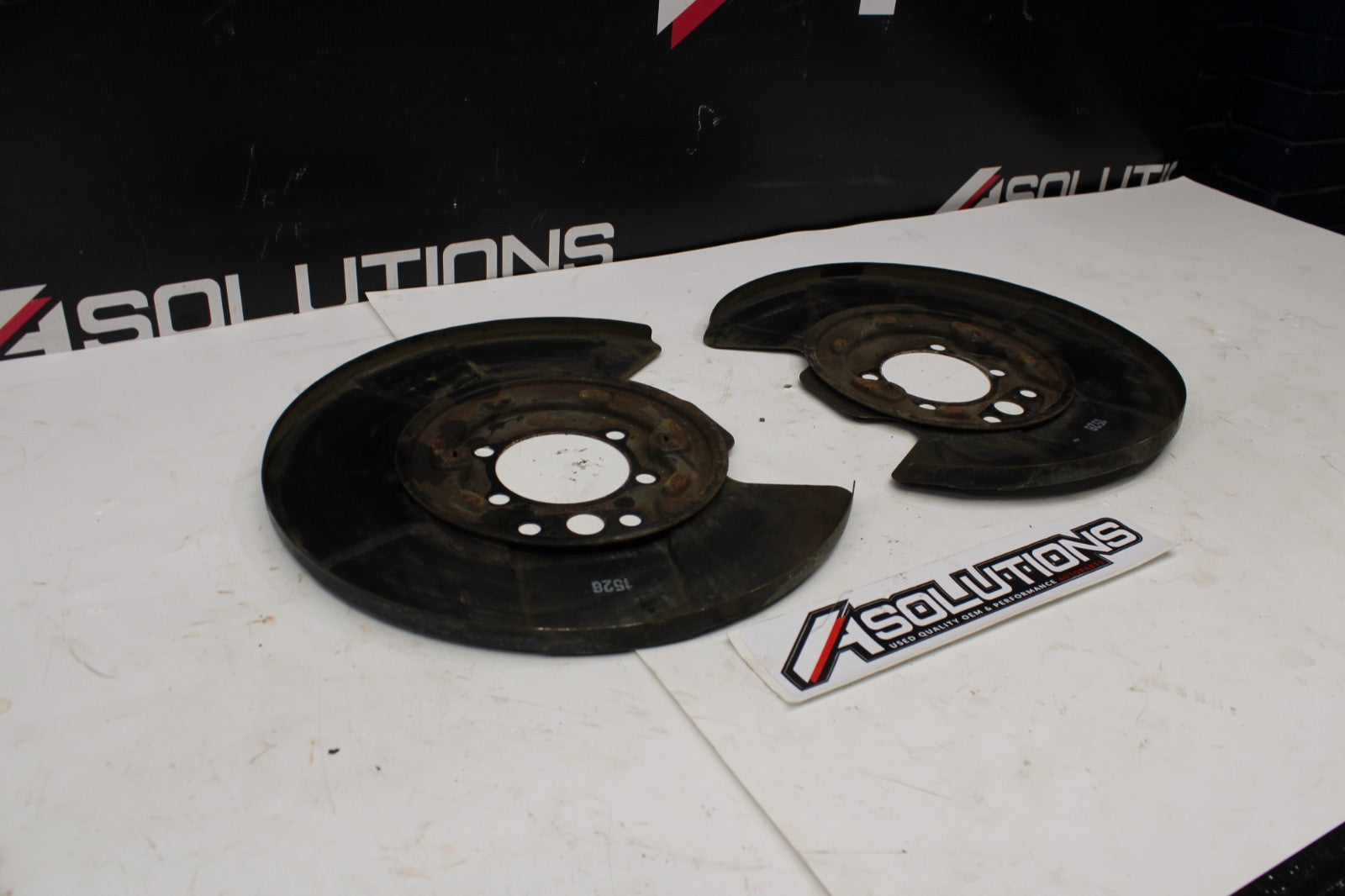 Used rear Akebono BBK Brake Dust Shields out of a 2011 Nissan 370z