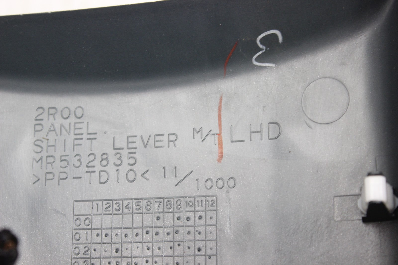 Used center console shifter bezel off of a 2006 Mitsubishi Lancer Evolution 9