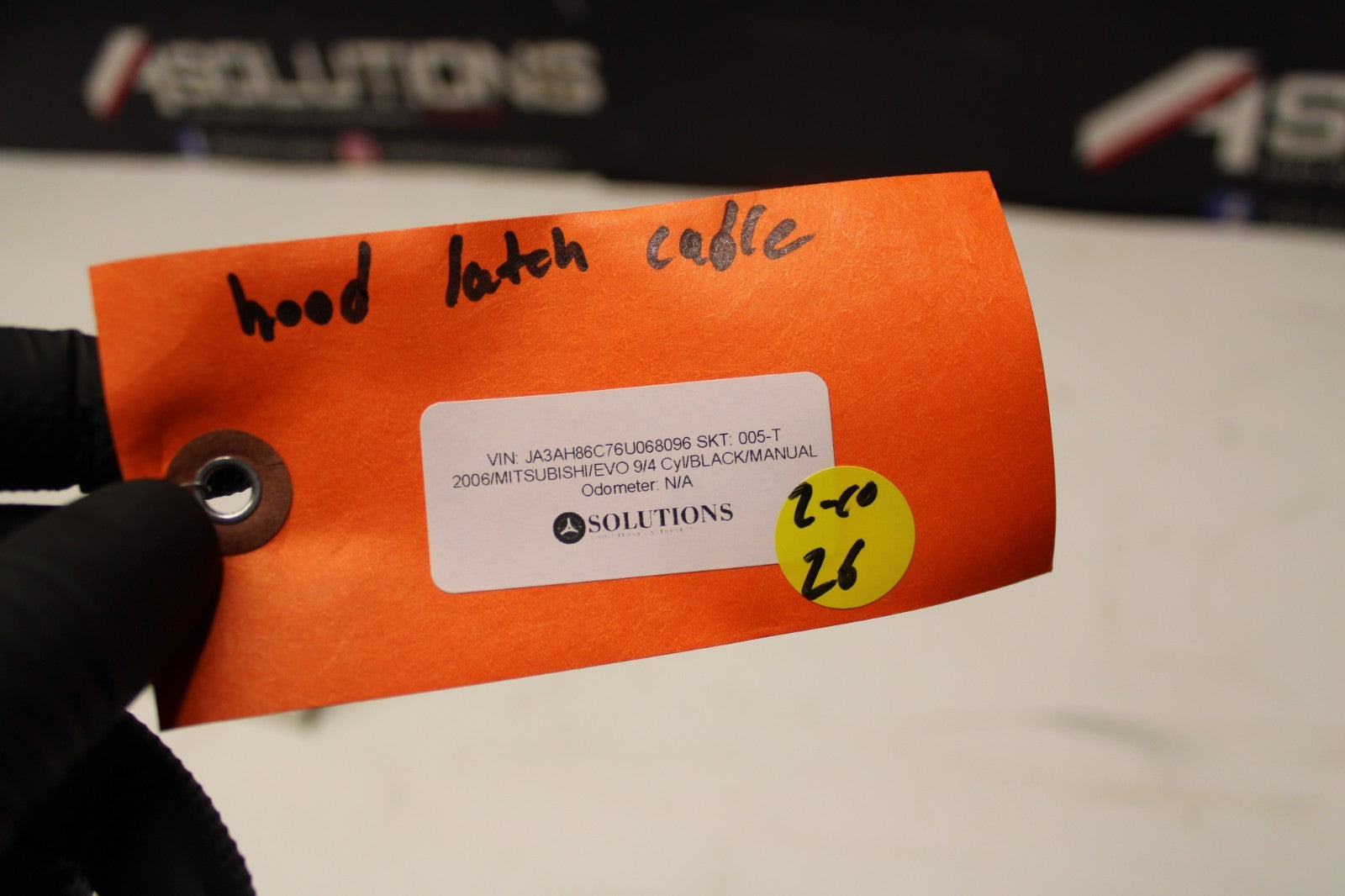 Used hood release cable w/ latch out of a 2006 Mitsubishi Evo 9