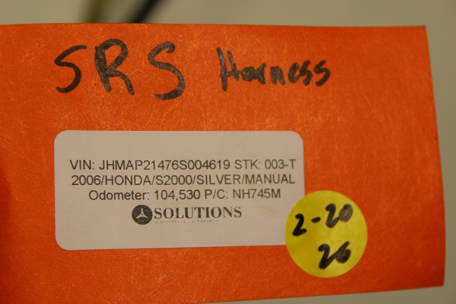 Used SRS wiring harness off of a 2006 Honda S2000