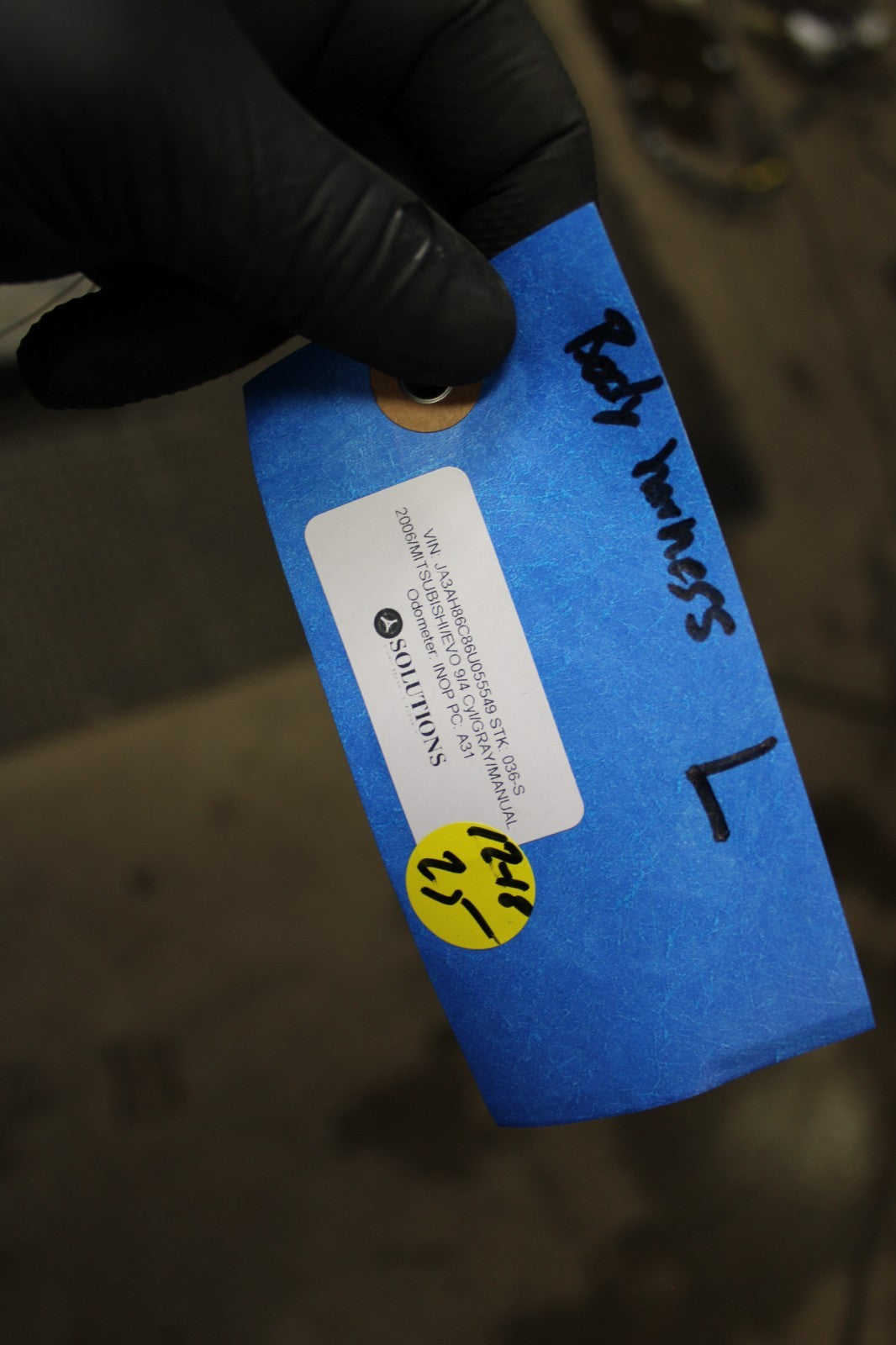 Used driver side floor sub harness off of a 2006 Mitsubishi Lancer Evolution 9