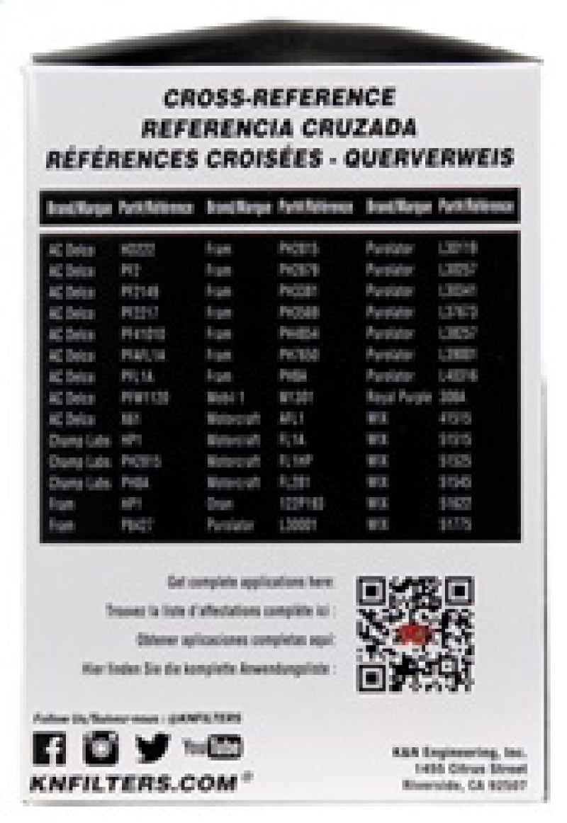 K&N Performance Silver Oil Filters have been specially designed for professional installers and service providers. Their high flow design can help to improve engine performance by reducing oil filter restriction. Our Performance Silver Oil Filters have a fluted canister shape so they can be removed with a traditional oil filter wrench commonly available to commercial installers. These Performance Silver oil filters provide outstanding filtration and engine protection throughout their service life. They are engineered to handle all grades of synthetic, conventional and blended motor oils. The pleated media provides high capacity making them suitable for extended oil change intervals when used in accordance with the vehicle and motor oil manufacturers recommendation. K&N Performance Silver Oil Filters are available for canister and cartridge type oil filter applications.